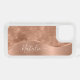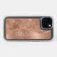 Easily personalize this rose gold brushed metal and glamorous faux glitter patterned phone case with your own custom name.