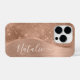 Easily personalize this rose gold brushed metal and glamorous faux glitter patterned phone case with your own custom name.