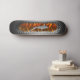 Metallic shark skateboard design with fire. Razor sharp teeth design.