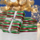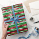 This Christmas wrapping paper features a festive design with horizontal stripes in traditional holiday colors of green, red, and white, enhanced by a metallic shimmering effect that adds an elegant sparkle. The design includes customizable text, allowing you to add personal messages like “Merry Christmas to [Name] from [Sender(s)],” which repeats along the stripes for a cohesive look. The shimmering effect catches the light beautifully, creating a luxurious and eye-catching presentation for your gifts. This wrapping paper is perfect for adding a personalized and dazzling touch to your Christmas presents.