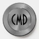 Shiny metallic silver gray texture medallion circle with a custom monogram in black.