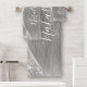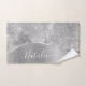 Easily personalize this silver brushed metal and glamorous faux glitter patterned bath towel set with your own custom name.