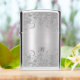An elegant image of the metallic silver background with a Sparkling floral swirls design accent.