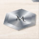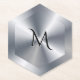 Metallic silver texture personalized monogram paper coaster