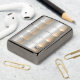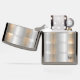 Metallic silver texture prints with rivets and a customized monogram. Simple elegant design.