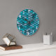 Metallic Turquoise Teal Mermaid Scales Pattern Large Clock