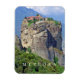 A beautiful view of one of the monasteries on the rocks in Meteora in Greece printed on a souvenir fridge magnet.