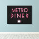 Metro is a popular name for diners. This Diner sign in white, red and black is a perfect accessory for your stylish house. Art Deco was a pastiche of many different styles, sometimes contradictory, united by a desire to be modern in the early nineteenth century. It featured bold, geometric forms and bright colors, as well as international and exotic designs.