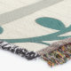 A quality printed throw has its advantages. This is a much finer weave throw than its loopier cousins, and though lighter, it is worth the investment for custom room accessorizing. The back is much prettier than the typical brown, and the fringe on the long sides very vivid, the selvage nicely done. Before photographing, I washed the throw in cold water, delicate, with a thicker woven throw the same size. On tumble dry low, this throw was dry in half the time as the other. This is a very practical quality if you use throws for furniture covers or to wrap up in frequently. The sleekness of the fabric makes it a great layer for accenting or protecting without the feeling of sitting on too much stuff. Perfect for napping or when you feel a light chill coming on. The color printing is beautiful and on this fabric, matched the design and color of my Photoshop image. This is an advantage for blending room fabrics and colors. The fringe on the short sides prints the colors from the design image and therefore varies from the side fringe. I streaked a white fractal line through the plaid pattern to give the illusion of weaving. This printed as crisp as an illusory thread, and put some white in the short side fringe, showing another advantage of print vs loomed- for artistic purposes, line lines, detail, and color integrity can be planned and preserved. My loomed throws have color limitations and more of a needlepoint texture. Print throws reproduce an exact image. The throw felt a little stiff straight out of the package, but this went away in the first delicate wash. Of course I searched the wash water for ink or bleeding and there was none.