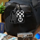 black and white retro city style monogrammed luggage tag with leather strap