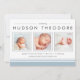 Announce your sweet babe's arrival with our modern, neutral collage style birth announcements, featuring three of your favorite newborn photos in square format, accented with modern typefaces and striped elements in soft black and light sky blue. Personalize with your baby's name, birth stats and family message using the fields provided.