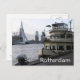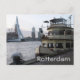 A ship moored on a quay along the Meuse river in Rotterdam City, Holland. In the background the Erasmus bridge and the new skyscrapers of the Wilhelmina quay.