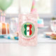 This can glass shows an angel wearing the Flag of Mexico in green, white and red. She flies inside a pale green fractal circle. Above reads CINCO DE MAYO with a spot to change to whatever year you want. Personalize below with a name.
