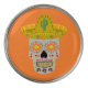 This awesome golf divot tool features a graphic design image of a Mexican Day of the Dead (Dia de los Muertos) inspired skull. The skull is a pale gray color and is wearing a yellow sombrero. It has gold teeth and Mexican Sunflowers, also called Tithonias< instead of eyes. The sombrero has a cactus on it and is covered in pretty swirl patterns and red and green Chilli peppers. The skull itself is covered in pretty colored flowers of different types.