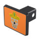 This awesome hitch cover features a graphic design image of a Mexican Day of the Dead (Dia de los Muertos) inspired skull. The skull is a pale gray color and is wearing a yellow sombrero. It has gold teeth and Mexican Sunflowers, also called Tithonias< instead of eyes. The sombrero has a cactus on it and is covered in pretty swirl patterns and red and green Chilli peppers. The skull itself is covered in pretty colored flowers of different types.