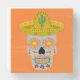 This awesome wooden box sign features a graphic design image of a Mexican Day of the Dead (Dia de los Muertos) inspired skull. The skull is a pale gray color and is wearing a yellow sombrero. It has gold teeth and Mexican Sunflowers, also called Tithonias< instead of eyes. The sombrero has a cactus on it and is covered in pretty swirl patterns and red and green Chilli peppers. The skull itself is covered in pretty colored flowers of different types.