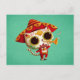 During The Day of The Dead all humans along with animals are out on the street to celebrate. Even Mexican Cats are taking out their fancy costumes and instruments and play and dance in Mariachi bands. This Mexican cat is playing trumpet, wearing colourful hat, clothes and lovely sugar skull makeup. Come out and enjoy Dia de Los Muertos with him! Please take a look at more Day of The Dead art in our store.