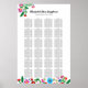 Ideal for a big wedding this seating chart is a crucial part of your reception decor and gives your guests an easy way to find their place at a table. All of the text can be personalized including the table number, guest names, headline and subheading with your names and wedding date. Chart is set up for 24 tables with ten people at each, clear the last box or two if you have fewer tables or use the customize options to rearrange text boxes to your liking and needs.