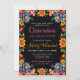 Mexican Fiesta Floral Black Quinceanera Invitation