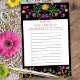Photo Game Answer sheet with Mexican Fiesta Flower design personalized to suit your event, such as wedding or couples shower. Colorful floral design with folk art style flowers in pink purple red and yellow. Designed for the wedding or bridal shower photo game "where were they" or "where did they go" with numbered lines for your guests to add up to 12 answers.