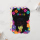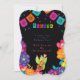 Design features a printed colored floral element in shades of orange, teal, pink, green, and purple watercolor flowers on a black background with papel picado banner. Calligraphy or type writing. Mix and match collection piece. Great for your wedding celebrations!