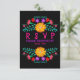 Mexican Fiesta Flowers Black Quinceanera RSVP Card