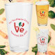 The Mexican LOVE FLAG on a drinking glass. The word LOVE is featured in red letters with a heart shaped flag of Mexico for the O. Perfect for a Valentine's Day gift for him. Can be customized for any occasion for your Mexican.