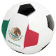 Soccer ball with one side of the ball done in the red, green, and white Mexican flag colors, with the flag's bird and snake symbol, in the middle. Green text reads Mexico and can be personalized to read what you want.