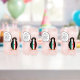 Ms. Penguin, on a set of can glasses, is wearing her vest of the flag of Mexico. She wears it on special Mexican holidays like Cinco de Mayo. You can place your special message in her talk bubble to personalize. The colors green, white, and red are found in the Mexican flag. Can be fun for family reunions, too.