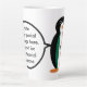 Ms. Penguin visited Mexico and bought a vest of the Mexican flag. Here, it shows on a large latte mug. You can make her say anything by changing the words in her talk bubble. La Señora Pingüino dice MI ESPAÑOL ES MUY MAL Y MUY PEQUEÑO SOLAMENTE. She speaks English, too. Great for roasting birthdays, Cinco de Mayo, and special occasions. January 20 is Penguin Awareness Day.