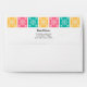 Bright and colorful Mexican fiesta themed envelope, complete with return address. Inside of this pretty envelope you will find an explosion of Mexican fiesta flowers in a multitude of colors on a royal blue background. The back of the envelope has a pretty border of floral papel picado in pink, pale orange and turquoise green along with your return address. (The template is set up ready for you to edit the sample wording to your name and address). This design also coordinates with our Quinceanera Collection which includes Mexican Flower Invitations, favors and party supplies.