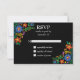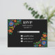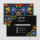 Colorful Mexican Fiesta RSVP card with folk art flowers against a dramatic black background (you can change the color to suit your taste). Great for Mexico destination weddings, Cinco de Mayo weddings, or for someone who loves Mexican culture. Part of our Mexican Flowers collection.