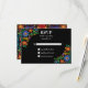 Colorful Mexican Fiesta RSVP card with folk art flowers against a dramatic black background (you can change the color to suit your taste). Great for Mexico destination weddings, Cinco de Mayo weddings, or for someone who loves Mexican culture. Part of our Mexican Flowers collection.