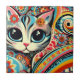 Mexican Folk Art Abstract Kitty Cat Talavera Style Ceramic Tile