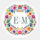 Mexican Folk Art Floral Monogram Classic Round Sticker