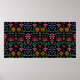 Mexican folk art seamless pattern, colorful design with flowers wallpaper inspired by traditional designs from Mexico. Happy flowers and abstract shapes ornament, retro background