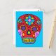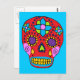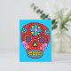 Mexican folk art sugar skull postcard. Background color can be customized.