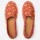 Trendy red espadrilles printed all over with an illustrated pattern of Mexican tacos, chillies and cacti