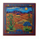 Mexican Huichol style landscape ceramic tile 8/12