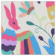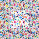 A pattern of colorful animals and flowers based on traditional Mexican Otomi fabric.