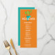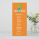 A colorful and cute menu template for a Mexican restaurant or Mexican themed dinner party. This cute menu has a hand drawn illustration of a Mexican cactus against a bright orange customisable background. The text is funny able to be customized to suit your needs.