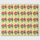 Such a fun Fiesta Themed gift wrap paper with a cartoon Mexican cactus in a big sombrero hat smiling broadly under his big moustache and shaking his maracas and his friend the red chilli pepper cartoon character. Just the thing for a Mexican Fiesta themed party or event.