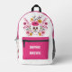 Mexican Sugar Skull with Fuchsia Flowers& Name Printed Backpack