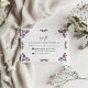 This Mexican Talavera Purple Floral Minimalist Wedding RSVP Card design features a minimalist approach with delicate, symmetrical blue floral motifs placed in each corner and along the edges. The small, leaf-like shapes create a sense of movement while maintaining an airy, open space in the center, allowing for ample text placement. The simplicity and elegance of the pattern evoke traditional Talavera tiles, giving the design a classic Mexican artisanal feel.
