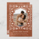 Celebrate your love with this rustic terracotta Mexican-themed wedding Save the Date Card featuring an intricate floral design. Perfect for a boho-inspired wedding. Matching items in our store Cava Party Designs.