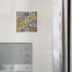 Square magnet with an image of colorful Mexican tiles with an assortment of patterns with a gleaming brushed gold border and “Mexico” in gleaming gold script (optional). See the entire Mexico Magnet collection in the HOME section.