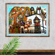 Mexican Town White Church Traditions. Design inspired by the painting of a small Mexican town. It shows a white church, and a group of small houses around it. It is an image full of vivid colors. Represents Mexican life and traditions. Hispanic Heritage boho art. Latino art to celebrate Hispanic culture, and Hispanic Heritage Month. This colorful Mexican treasure of folk art celebrates the Latin soul. Indigenous art honoring Latin America roots. It is a combination of ethnic art and Mexican traditions. Thank you for visiting my joyful corner.