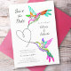 The card features a delightful design inspired by traditional hummingbird folk art drawings. Two whimsical hummingbirds in pink, blue, and green hues come together to form a heart, symbolizing the union of two hearts in love. Against a soft and understated white backdrop, the script and serif typography add an elegant touch to the overall design.