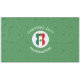 Personalized tablecloth has a horizontal angel wearing the flag of Mexico for holiday gift decorating or Christmas decor. The Mexican Flag Christmas angel is found inside a white, fractal circle of squiggly squares. The background is a green fractal squiggly squares. Add your own text or personalize with a name and the year.