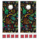Joyful and Colorful Line Art Mexico Fiesta Pattern, composed by Typical Elements like sugar skulls, maracas, inca warrior, aztec warrior, chilli pepper, cactus, pyramid, lime, tequila, sombrero, tacos, a chameleon, and some floral ethnic and decorative elements. Original Vector Art Copyright BluedarkArt.